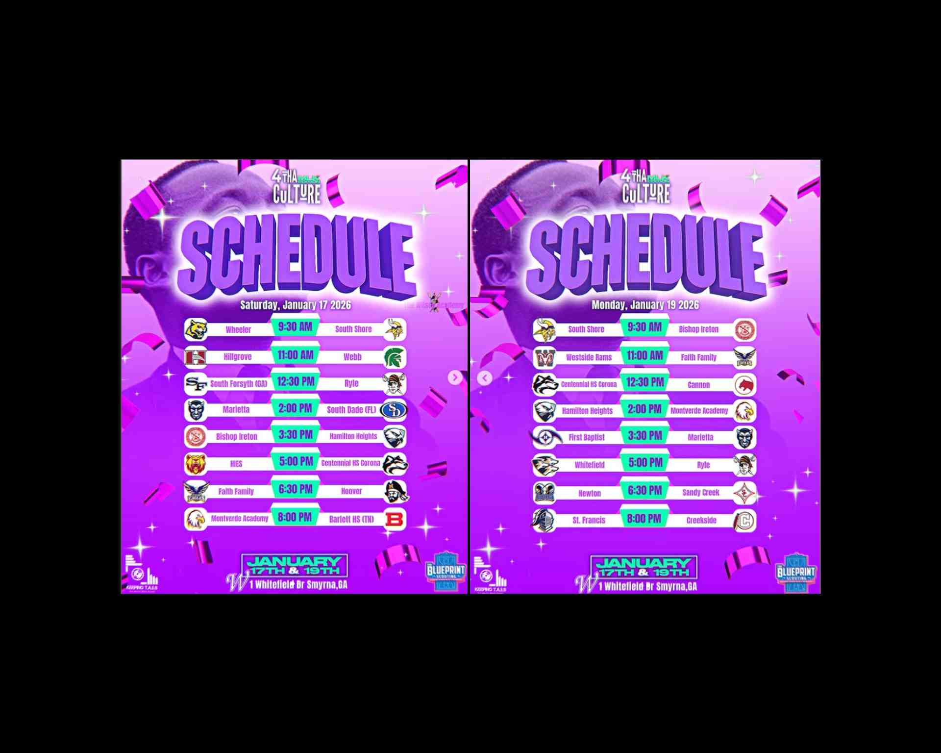 4Tha Culture Holiday Hoops Classic: December 19th - December 21st: Richmond, VA ........ 4Tha Culture MLK Classic: January 17th & January 19th: Whitefield Academy, Smryna, GA